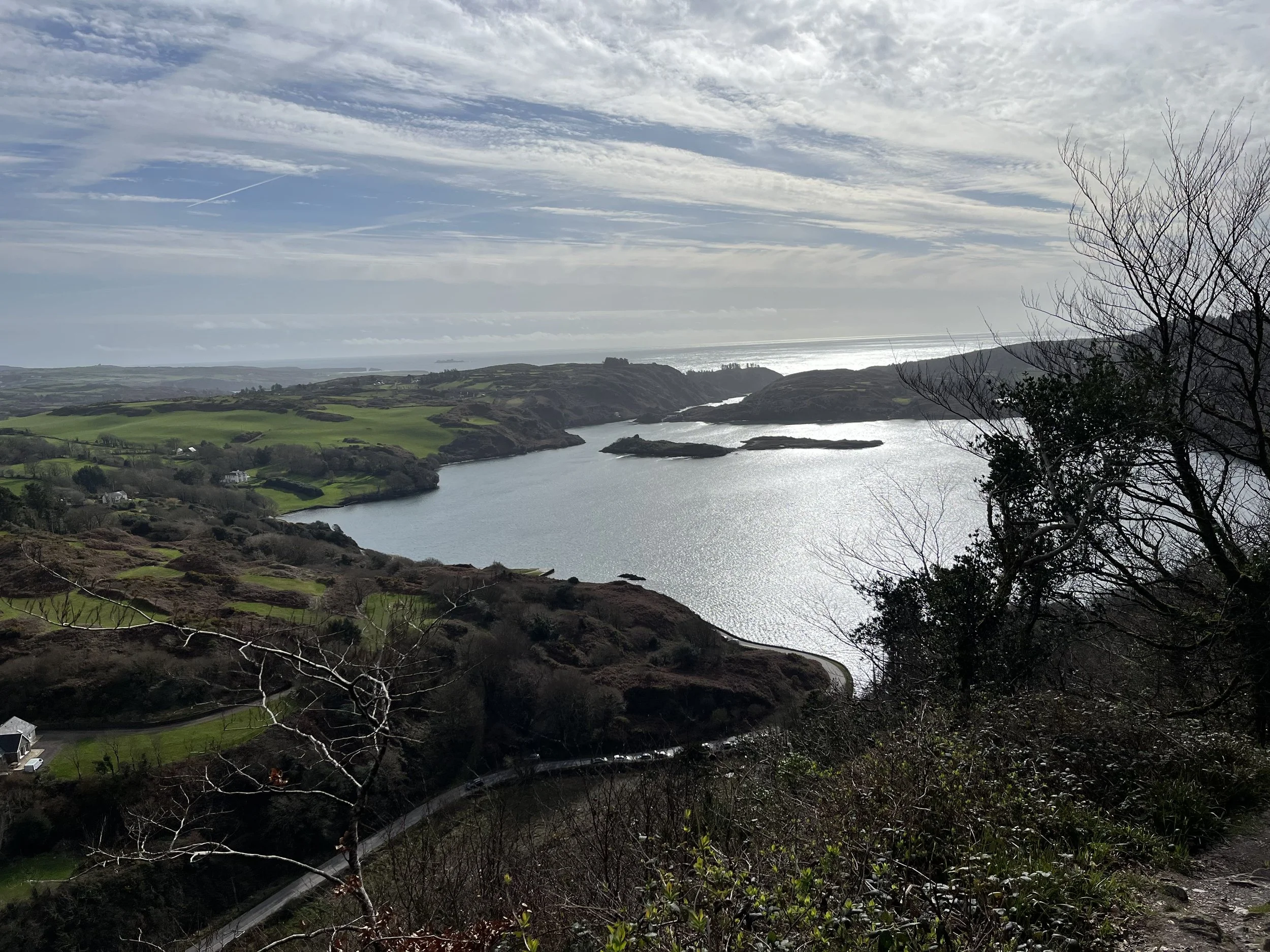 At one viewpoint, we paused to look out over the beautiful Lough Hyne and reflected on its unique ecosystem. Each day, seawater rushes into the lake through the narrow channel known as “the Rapids.” With every high tide, the temperature and salinity shift. And yet Lough Hyne is bursting with life — home to more than 1,850 species, representing around 75% of the marine creatures found in Ireland.